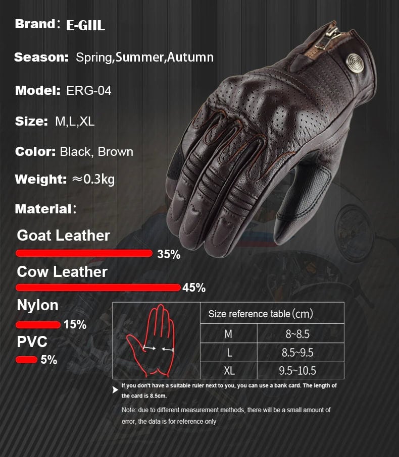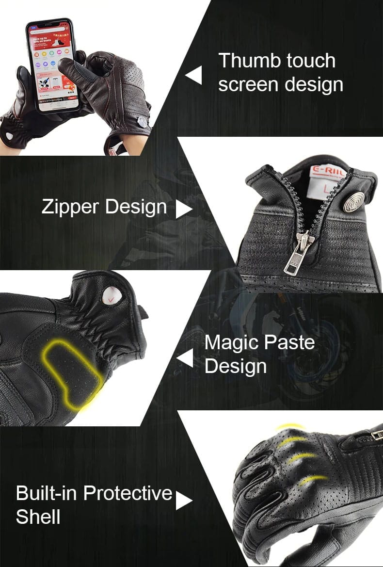 Guantes para Motocicleta de Cuero Original, Unisex